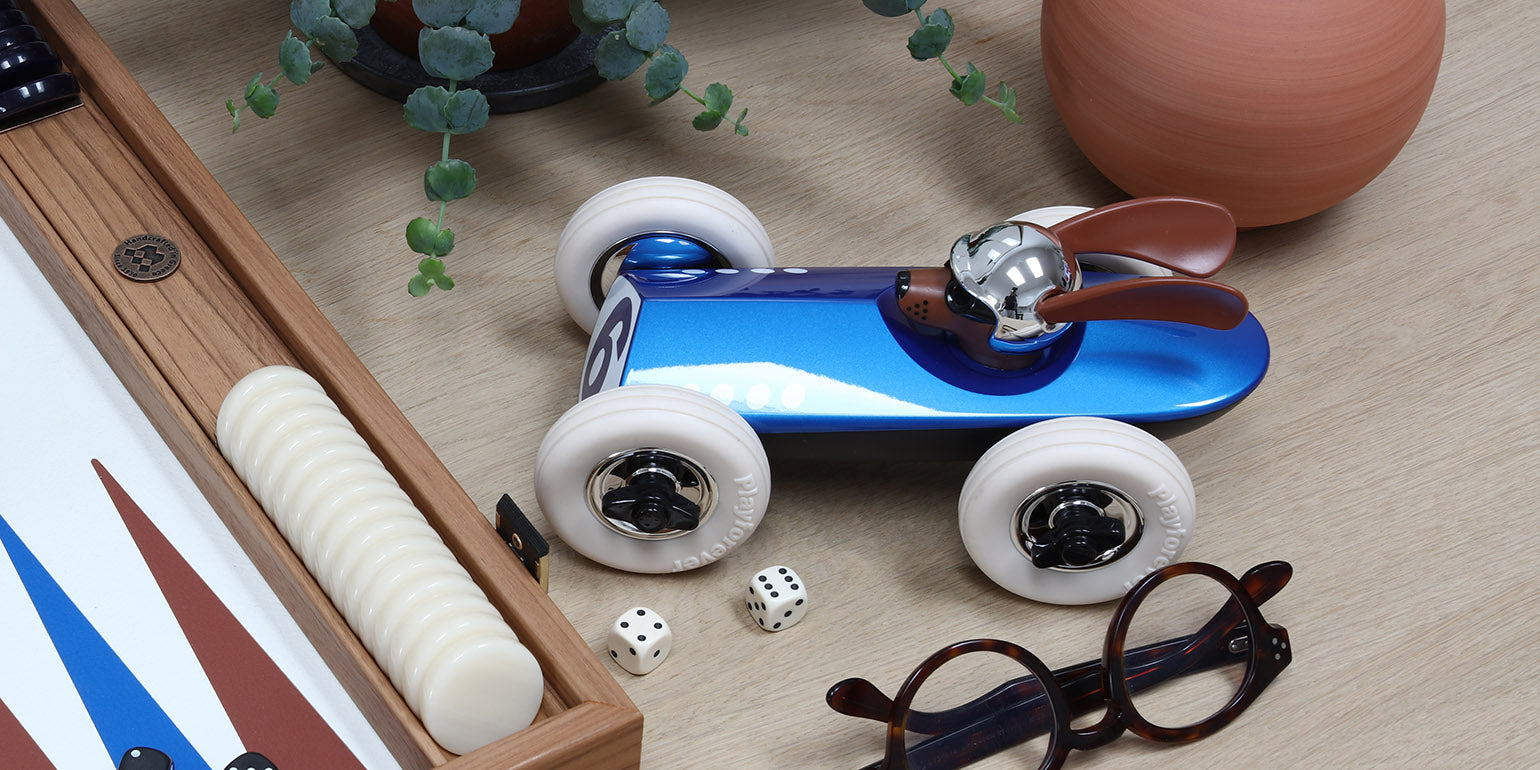 While this collection of toys can be given to a child, they are more focused towards adults. Either as pieces of great design to complement their homes or link to a car era they might love.